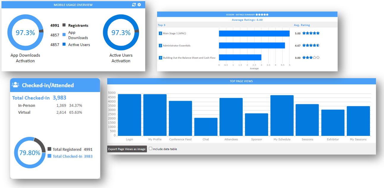 • Attendee display can be defined by registration types (to exclude C-Level, etc.) and viewed by designated registration types only.