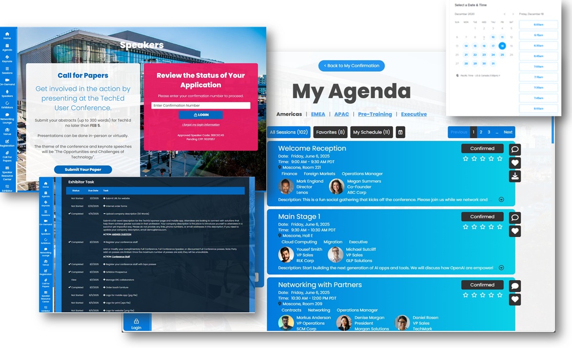 Deliver sophisticated, multi‑stakeholder conferences without custom coding. With Lenos Studio, one non‑coder can build and manage everything—speaker, sponsor, and exhibitor portals; session agendas; call‑for‑papers workflows; native app; registration; content; and communications—all in days, not months.