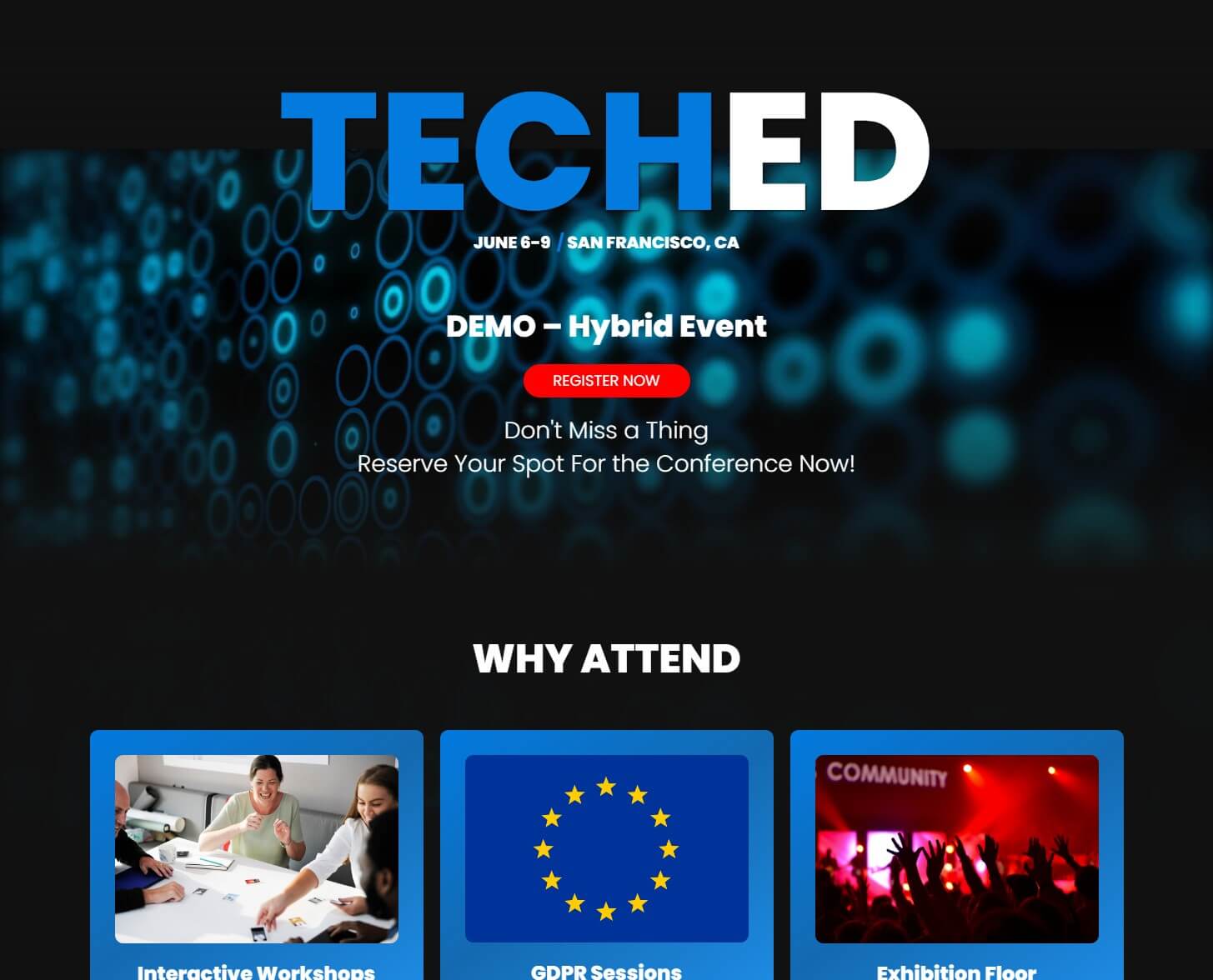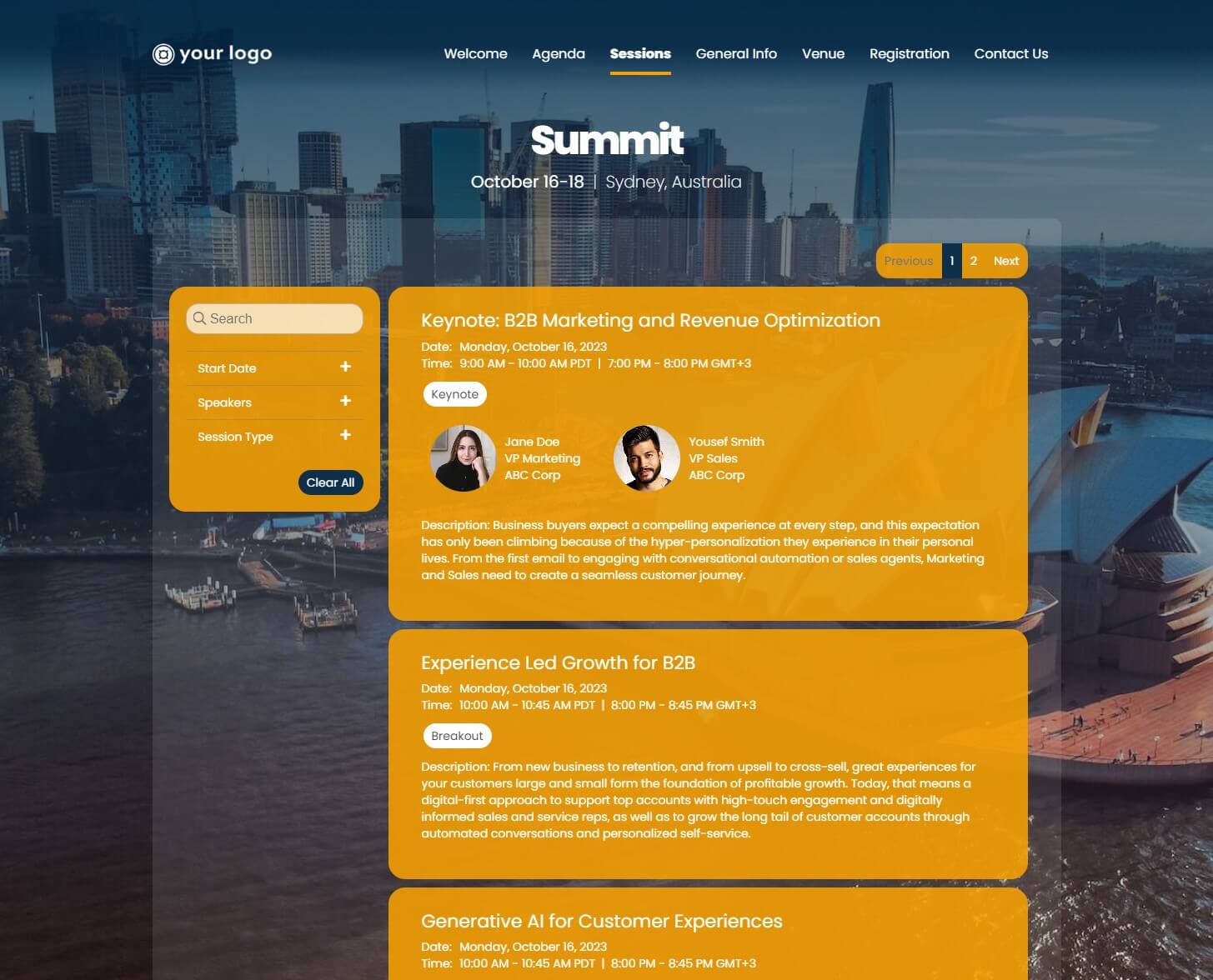 Choose from professionally designed, fully customizable starter templates based on specific event types. Or, begin with a blank canvas and design your site from scratch.
