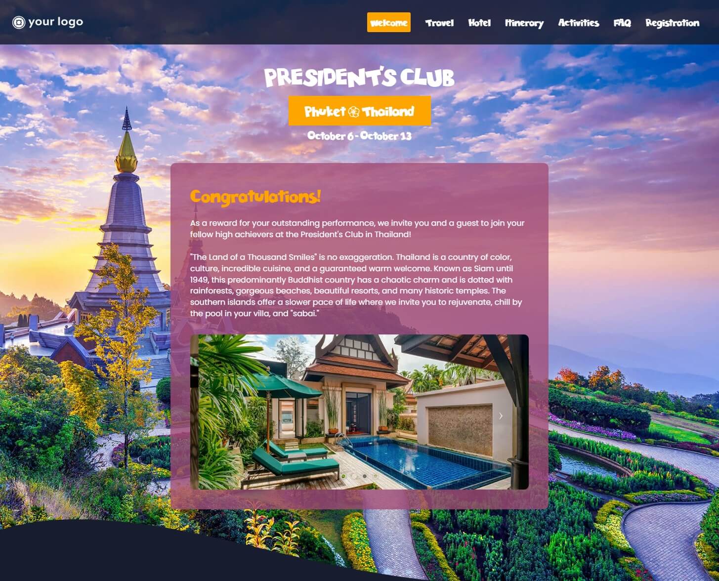 Create your own complete site templates, based on business units, product branding and/or program types according to corporate branding guidelines. No coding required.